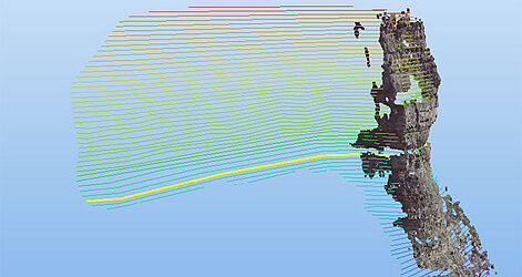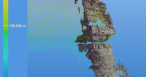 Mittels 3D-Laserscanning lassen sich nicht nur Gebäude und Fassaden effizient und schnell vermessen, auch Geländeformen und Felsformationen lassen auf eventuelle Senkungen und Deformationen überprüfen