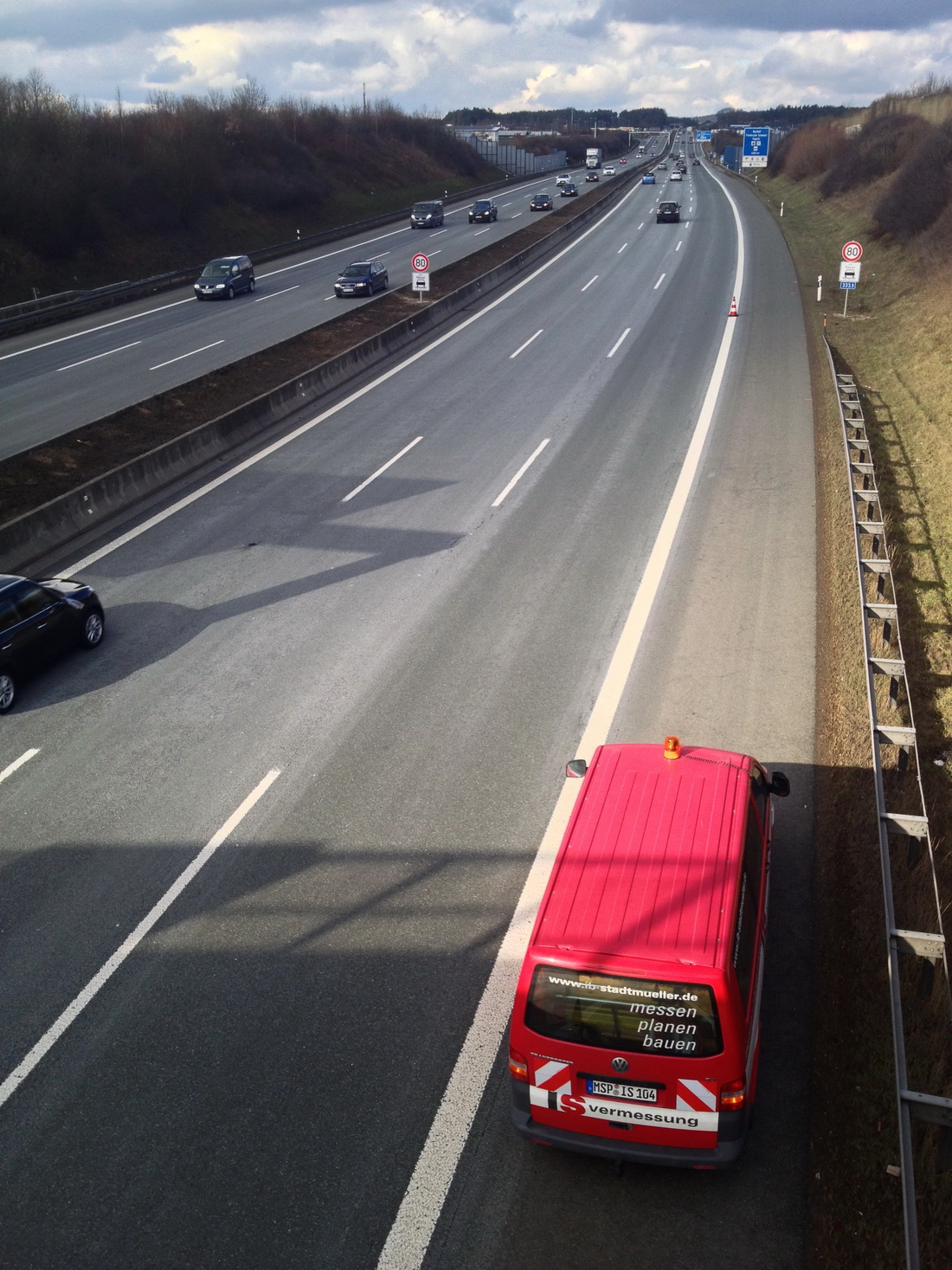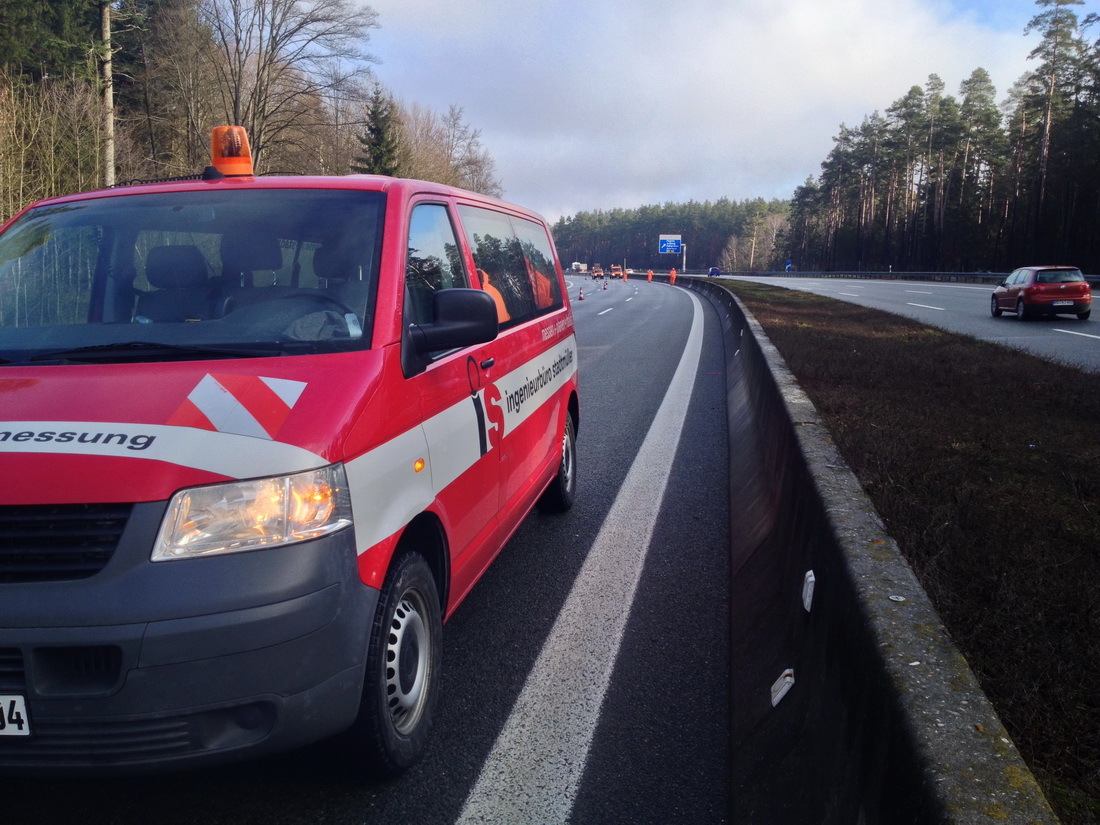 Als Grundlage für weitere Planungen wurden alle Fahrspuren, der Stand- und Mittelstreifen sowie das Bankett auf eine Länge von ca. 7 km aufgemessen.