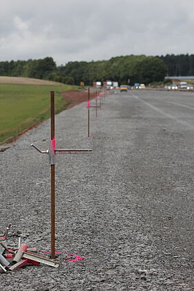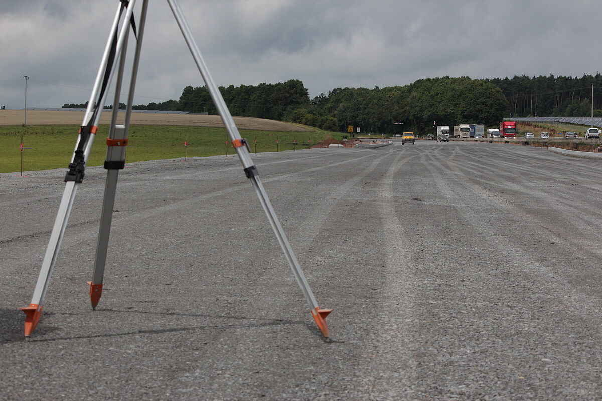 Seit ca. 1,5 Jahren arbeiten wir am 6-streifigen Ausbau der A3 mit. In Fahrtrichtung Nürnberg und Frankfurt wurde die Autobahn verbreitert und voll ausgebaut. Auch die Anschlussstelle Marktheidenfeld/Altfeld und Teile der Zubringerstraßen wurden neu gestaltet. Unser Büro stellt und baut den sog. Automatikdraht für den korrekten Einbau der Schotter- und Asphaltschichten. Im Anschluss muss die korrekte Dicke der eingebauten Schichten mittels Nivellement millimetergenau gemessen und nachgewiesen werden.