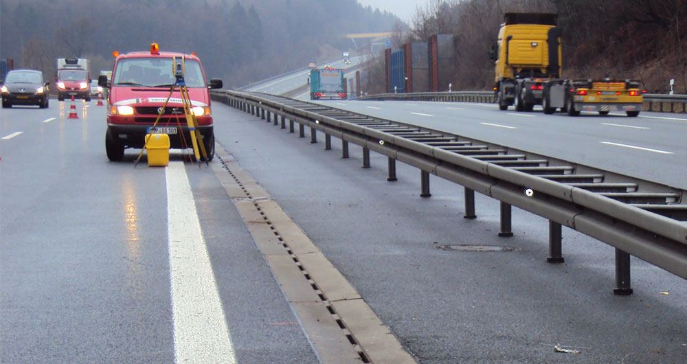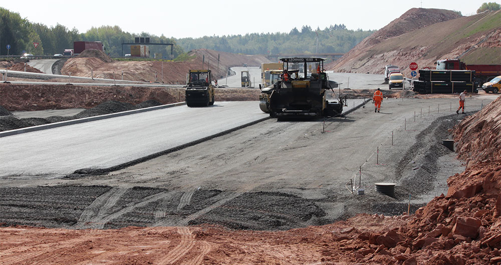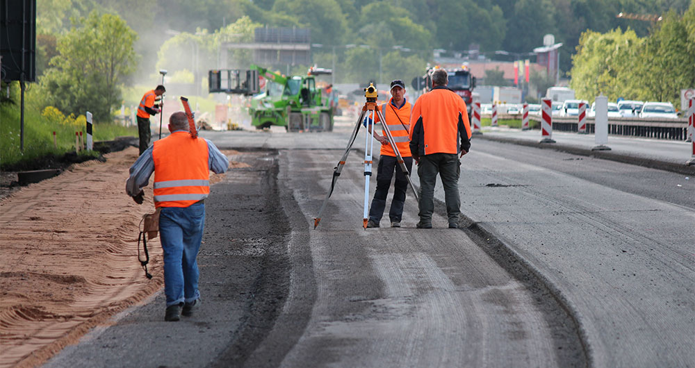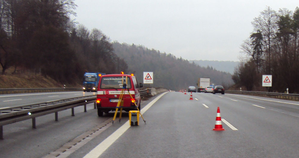 Unsere Aufgabe war das Schichtdicken Nivellement zur millimetergenauen Kontrolle und anschließenden Abrechnung der verbauten Materialmengen (Erdplanum, Schotter, Asphaltschichten), sowie das Abstecken und Aufstellen des Leitdrahts zur Abtastung beim Asphalteinbau.