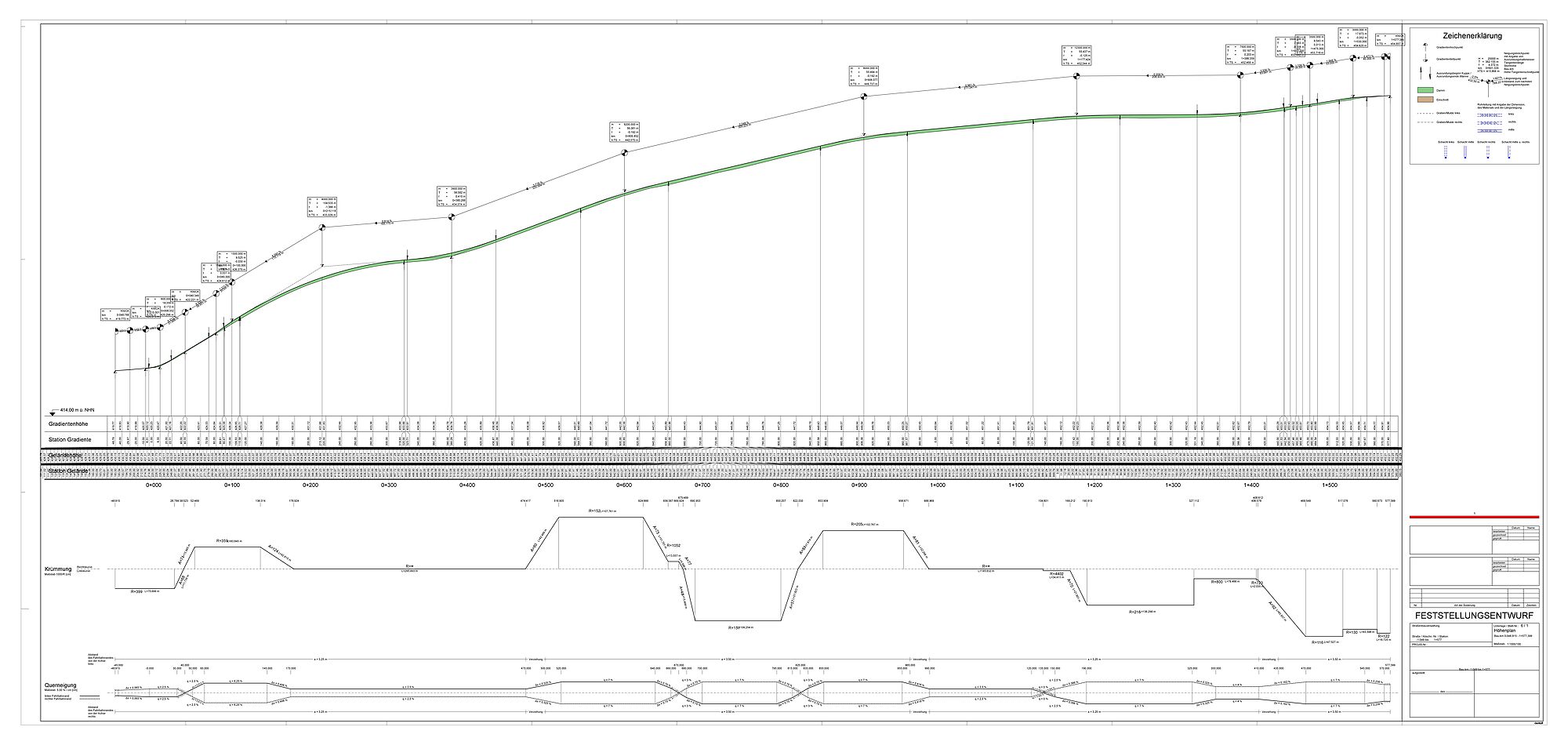 In Zusammenarbeit mit der Fa. Rädlinger haben Planung und Bau einer Staatsstraße im Landkreis Bayreuth übernommen. Beginned mit einer Bestandsvermessung der Straße im Ist-Zustand haben wir daran anschließend die Planung übernommen und nach den einschlägigen Vorschriften ausgeführt. Der Höhenplan ist ein Ergebnis dieser Phase. Bei der unmittelbar daran anschließenden Bauvermessung waren wir zum Stellen des Fahrdrahtes und der Schichtdickenkontrolle vor Ort.