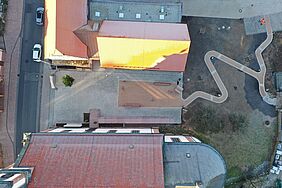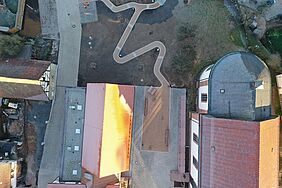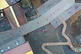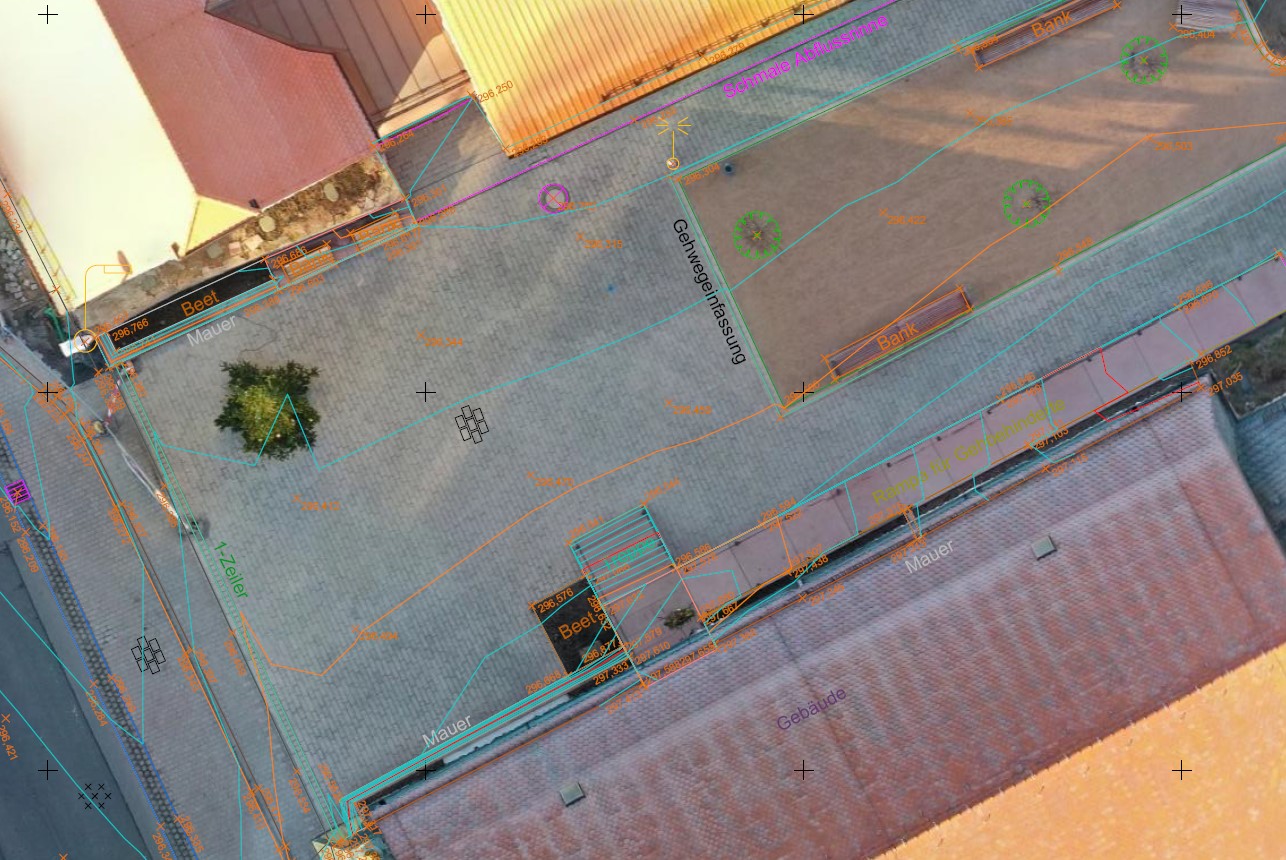 Im Zuge der Neugestaltung des Geländes waren wir zusammen mit der Firma Hofmann Landschafts- und Gartenbau tätig. Neben den Absteckungen und allgemeinen Vermessungsarbeiten während der Bauphase haben wir besonders die Schlussvermessung übernommen. Diese Vermessung dient als Grundlage für die genaue Dokumentation und nachfolgende Abrechnung der Bautätigkeit, so wird z.B. ermittelt wie viele Meter Randsteine wurden verbaut, oder welche Flächen sind mit Pflaster A oder Pflaster B ausgelegt. Zum Einsatz kamen der klassische Tachymeter aber genauso die Auswertung durch selbst angefertigte Luftbilder und daraus erstellten Punktwolken.