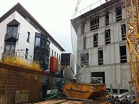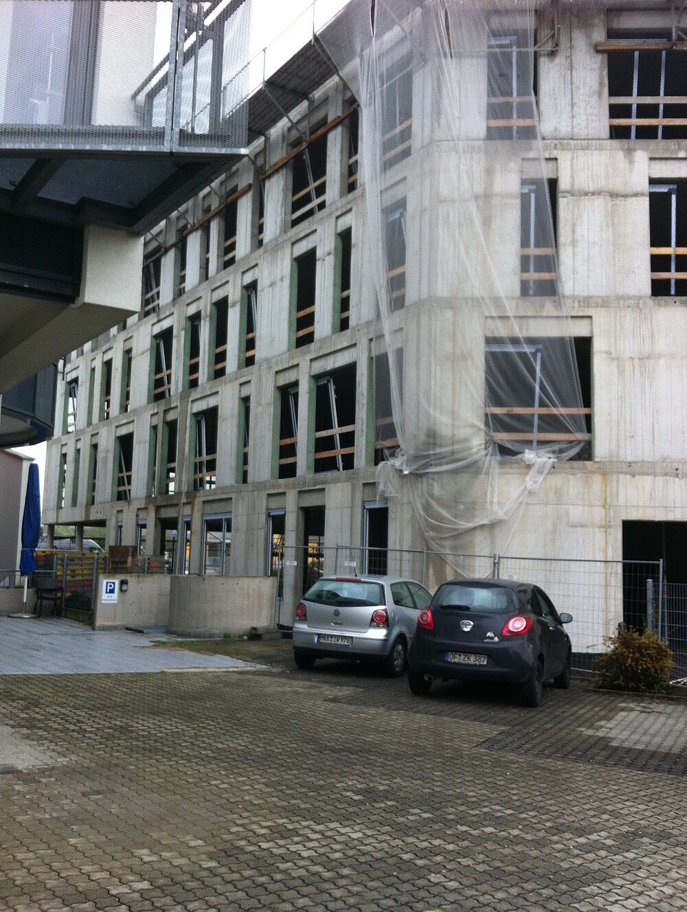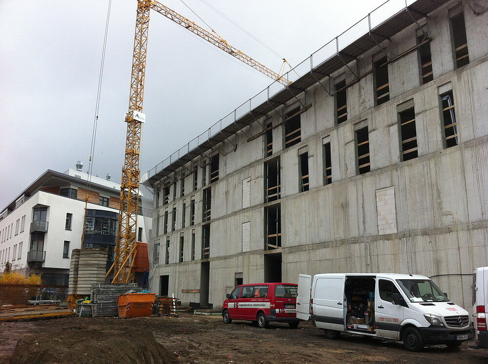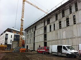 Abstecken der Gebäudeachsen auf dem Schurgerüst und Sicherung der Hauptachsen, gesondert für jede Etage.