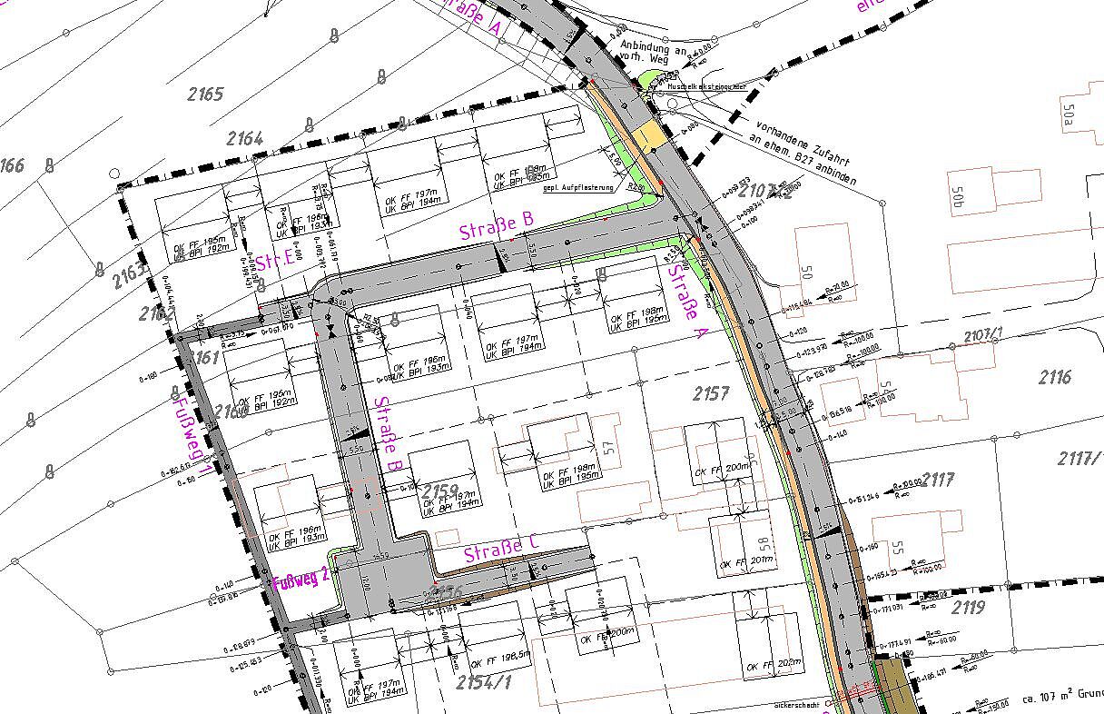 Tiefbautechnische Erschließung des Neubaugebietes Saupurzel in Karlstadt. Bauabschnitte I - IV