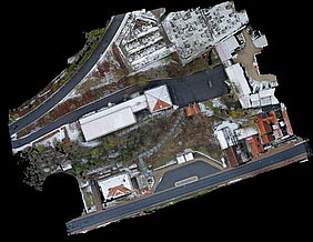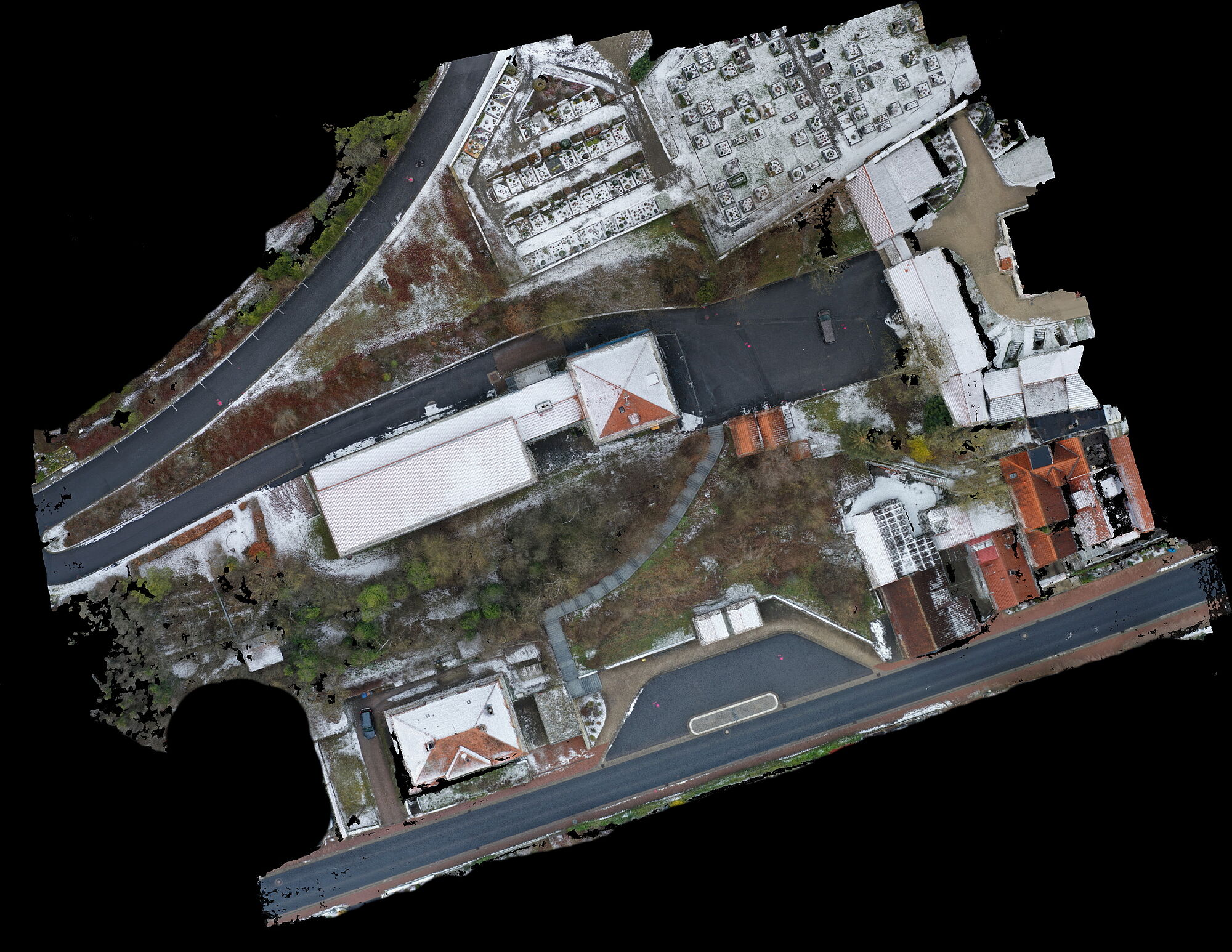 Wir haben eine ausgedehnte Bestandsvermessung des Geländes um die Schule in Aschfeld vorgenommen. Neben der klassichen terrestrischen Vermessung mittels Tachymeter, haben wir auch unsere Helokoterdrohne eingesetzt, um z.B. Dachflächen, große Geländestrukturen und zu Fuß unzugängliche Bereiche zu erfassen. Durch die Erstellung eines Orthophotos und das Auswerten der erzeugten Punktwolke konnten weitere Details in die Vermessung und so in den Bestandsplan für den Kunden eingearbeitet werden.