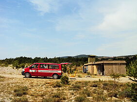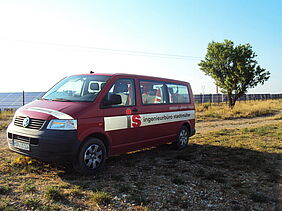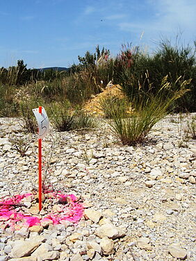 Absteckung der Verankerungspunkte zur Installation der Solaranlagen mit einer Gesamtleistung von annähernd 9 Megawatt.