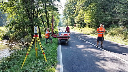 Darüberhinaus steht ein 3D-Laserscanner für das schnelle Erfassen von Objekten und bei Bedarf ein Meßfahrzeug zum Scannen kompletter Trassenverläufe zum Einsatz.